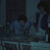 - Imagen de joven soplando las velas de cumpleaños de una torta
