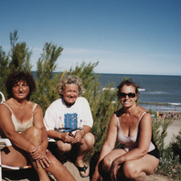 - Retrato grupal. Se observa a Nora Cortiñas junto a dos mujeres en la playa