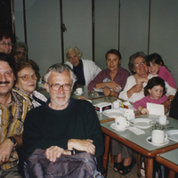 - Retrato de Nora Cortiñas junto a otras personas en el bar La Embajada del café. Se identifica a Josefina "Pepa" García de Noia y Margarita Peralta de Gropper