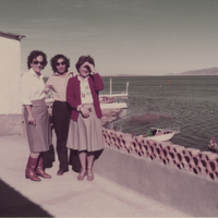 - Retrato grupal. Se observa a Nora Cortiñas junto a dos mujeres. Al fondo se observa el paisaje lagunar