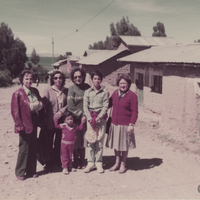 - Retrato grupal. Se observa a Nora Cortiñas junto a otras personas . Al costado se observan las casas del pueblo