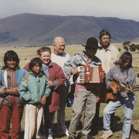 - Retrato grupal. Se identifica a Nora Cortiñas y Carlos Cortiñas junto a un grupo de músicos
