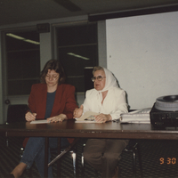 - Registro de Nora Cortiñas y Beverly Keene exponiendo