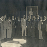 - Epígrafe: El Gobernador de Buenos Aires, señor Carlos Aloé, en un instante de la visita que le efectuaron los miembros del Sindicato Vendedores de Diarios, Revistas y Afiches, en su despacho oficial de la Casa Rosada