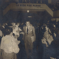 Carlos Aloé entre la gente. De fondo, la inscripción : "LA VIDA POR PERÓN".