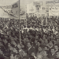 - Multitud. Bandera :"Sindicato Obrero Cervecero de Azul, presente"