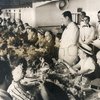 - Epígrafe: El presidente de la Nación, General Perón, hace uso de la palabra en el almuerzo ofrecido hoy en el Cabo de Hornos por el jefe de misión comercial española