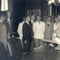 - Epígrafe: El Ministro de Guerra, general Humberto Sosa Molina, en momentos en que presenta al presidente de la Nación, general Juan Perón a los cadetes recientemente egresados del Liceo Militar