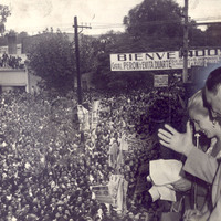 - Epígrafe: El Presidente de la República general Juan Domingo Perón y su esposa, señora María Eva Duarte, saludando a la concurrencia concentrada en la plaza San Martín, de la ciudad de Córdoba