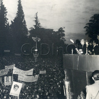 - Epígrafe: El primer Magistrado y su señora esposa reciben el aplauso del pueblo mendocino en seguida de hablar el General Perón
