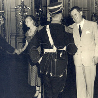 - Epígrafe: El presidente de la Nación y su esposa, señora Eva Duarte de Perón, en momentos de despedirse de los soldados del Regimiento Granaderos a Caballo, "General San Martín", clase 1928, que prestaron servicios en la Casa de Gobierno. La ceremonia tuvo lugar hoy poco antes de mediodía en la Presidencia. Año del Libertador General San Martín