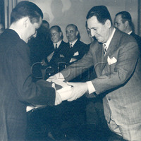 - Juan Domingo Perón entrega el diploma a un egresado de telecomunicaciones