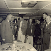 - Epígrafe: El general Perón y su esposa conversan a bordo del yate Tequara con las altas autoridades nacionales que concurrieron al Paseo Victoria, en el Tigre, para despedirles momentos antes de su partida para la localidad de San Lorenzo