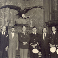 - Epígrafe: El presidente de la Nación, general Juan Perón en compañía del comandante y la tripulación del expreso aéreo "El Pampeano", que en compañía del Ministro de Transportes, coronel Castro lo visitaron esta mañana en su despacho oficial de la Casa de gobierno. La nave aérea que se incorporó recientemente a Aerolíneas Argentinas, acaba de establecer un record entre Nueva York y Buenos Aires. Año del Libertador General San Martín