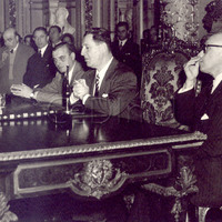 - Juan Domingo Perón habla a la delegación de escribanos, le piden la reelección