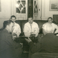 - Epígrafe: Juan Domingo Perón con los periodistas salteños que recorrieron en automóvil las 14 provincias en adhesión a la reelección del general Perón