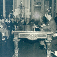 - Juan Domingo Perón habla a un grupo.