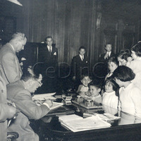 - Epígrafe: El presidente de la República, general Perón, atendiendo a una política madre en el Ministerio de Trabajo y Previsión