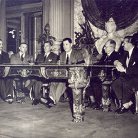 - Epígrafe: El primer mandatario, general Perón, en compañía del gobernador de la provincia de Buenos Aires, señor Aloé y el rector de la Universidad Nacional de la ciudad Eva Perón, ingeniero Pascali, recibió el saludo de los bachilleres del curso nocturno de egresados del Colegio Nacional de esa casa de estudios