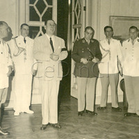 - Epígrafe: El primer magistrado, general Perón, en compañía del ministro del Ejército y altas autoridades de esa institución armada, dirige la palabra a los oficiales y suboficiales, que finalizaron los cursos de especialización como inspectores de tropas aerotransportadas