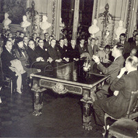 Juan Domingo Perón con delegados de la Asociación de Transportes aéreos internacional