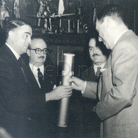 Juan Domingo Perón recibe el diploma que lo acredita como presidente electo 1952-1958
