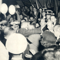 - Juan Domingo Perón se abraza con el presidente de Chile Carlos Ibáñez del Campo