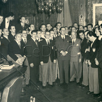 - Epígrafe: El Gral Perón con los integrantes de la delegación universitaria argentina, que actuaron en la tercera semana deportiva internacional