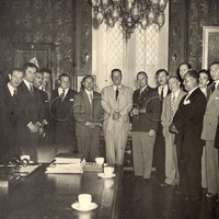 - Epígrafe: Juan Domingo Perón recibe a los ajedrecistas que participaron en el XVI torneo internacional en Mar del Plata