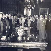 - Epígrafe: Legisladores que actuaron en el período 1946-52, saludaron al general Perón entregándole unas plaquetas de oro, testimonio de lealtad