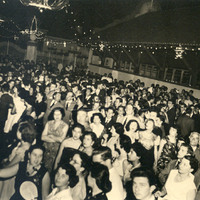 Multitud reunida en torno a Perón, durante la comida ofrecida a los dirigentes sindicales con motivo del año nuevo de 1954.