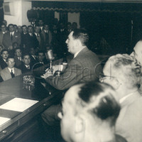 - Epígrafe: El presidente de la República, general Juan Perón, durante su discurso de esta tarde en el local de la C. G. del Trabajo