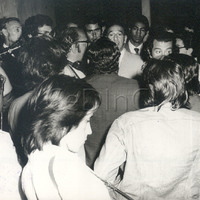 - Epígrafe: Los periodistas reclamando, sin éxito, tener acceso al encuentro de Vicente López. Periodistas con un Coronel