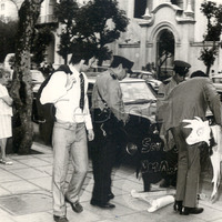 - Policías revisan un auto frente al Cabildo.