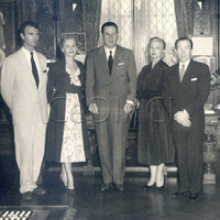 Juan Domingo Perón con un grupo en el Festival Internacional de Mar del Plata