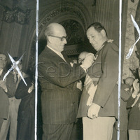 - Epígrafe: El gral Perón en el momento de ser condecorado con la insignia de Grecia por parte de ese país