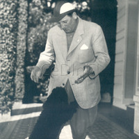 Juan Domingo Perón con su gorrita de béisbol, jugando con un perro.