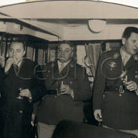 - Epígrafe: El presidente de la República, General Perón, después de haber pasado revista a la Plata de mar en el instante de servirse un vino de honor en la cámara del comandante de la Fragata Sarmiento, en Puerto Nuevo