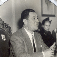 - Discurso de Juan Domingo Perón. A su lado, está Eva Duarte de Perón