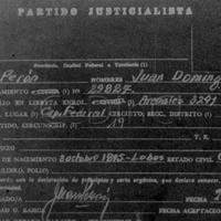 - La tarjeta de filiación de Juan Domingo Perón al Partido Justicialista